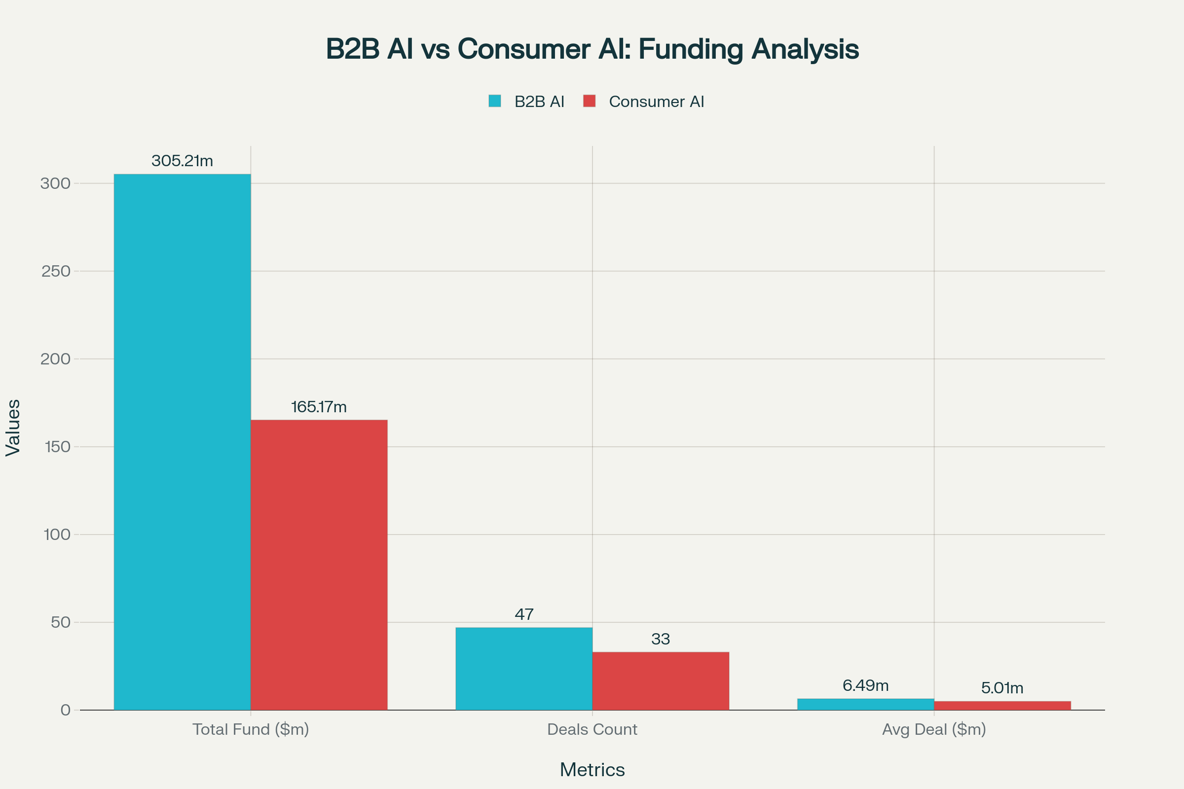 - 2025: B2B AI ($136.4M) vs Consumer AI ($12.9M)